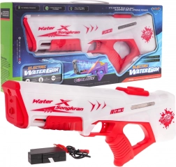- Pistol cu apă (roșu), acumulator 3,7 V, cablu de încărcare USB, manual