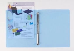Dosarul cu inele Opaline în format A4 este echipat cu un buzunar frontal transparent, în care puteți introduce ușor pliante sau etichete proprii pentru o prezentare eficientă.