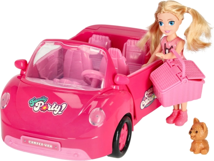 Îmbogățiți jocul copilului dumneavoastră cu acest cabriolet roz, care oferă multe opțiuni pentru crearea de scenarii precum excursii cu familia, după-amiezi de picnic sau îngrijirea unui prieten animal îndrăgit. Datorită ușilor și portbagajului deschizător, cabrioletul oferă o experiență interactivă, care susține dezvoltarea imaginației și a abilităților motorii fine.