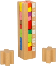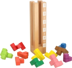 Blocurile sunt realizate din lemn durabil și au margini netede și culori vii, asigurând o joacă sigură. Această jucărie este alegerea perfectă pentru a combina învățarea cu distracția, sprijinind dezvoltarea copilului prin sarcini captivante.