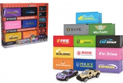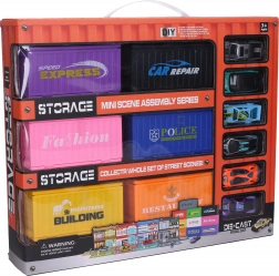 Vă prezentăm Orașul container, ideal pentru micii constructori și colecționarii de mașinuțe. Pachetul include:
