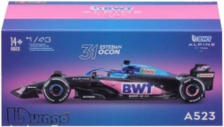 Bucurați-vă de replica autentică a monopostului de curse ALPINE A523 în versiunea sezonului 2023. Modelul la scara 1:43 combină piese metalice cu elemente din plastic detaliate, oferă linii precise ale aripilor față și spate și pneuri realizate cu atenție. Nu lipsesc numărul 31 și designul distinctiv BWT în combinația albastru‑roz.
