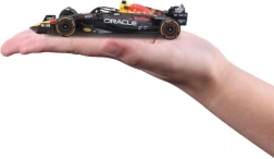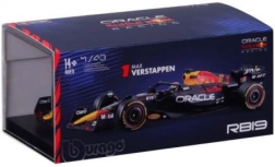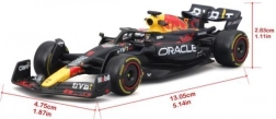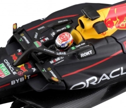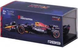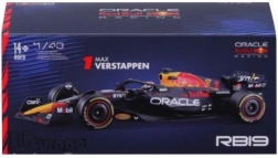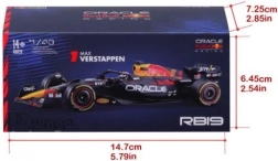 Bucurați-vă de o replică de top a monopostului campion RED BULL RACING RB19 (2023) în schema iconica negru-albastru cu accente roșii și galbene. Modelul la scara 1:43 surprinde fidel curbele aerodinamice, detaliile roților și inscripționările exacte ale sponsorilor, inclusiv Oracle. Include și figurină a pilotului Max Verstappen în cockpit.