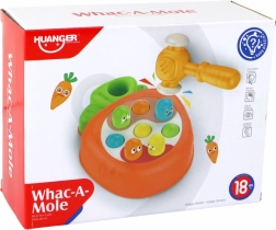 Îndrăgitul joc pentru copii whac‑a‑mole, într-un design drăguț de morcov, atrage prin culori vii și operare simplă. Copiii lovesc ușor cu ciocănelul figurinele colorate care ies din nou – jocul antrenează în mod natural concentrarea, coordonarea și răbdarea.