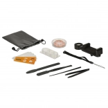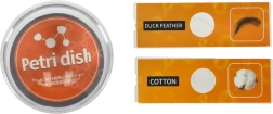 Setul include două lamele pregătite cu epruvete (pene de rață și fibre de bumbac) și alte patru lamele goale pentru prepararea propriilor epruvete. Acest dispozitiv permite copiilor să își pregătească propriile epruvete, crescând și mai mult interesul și abilitățile lor. În pachet sunt incluse și instrumente de bază, precum pensetă și un scalpel plastic, pentru o preparare ușoară a epruvetelor proprii.