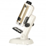 Acest microscop este compact și ușor de transportat, ceea ce îl face un instrument ideal pentru utilizare acasă sau la școală.