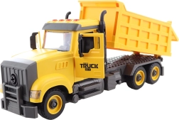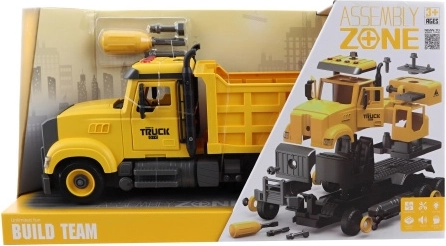 Basculantă mare și reușită cu șurubelniță. Alimentare cu 3 baterii AG13 incluse în pachet. Mașina are pe acoperiș 4 butoane cu funcții: pornire, claxon, bip la mers înapoi și melodii. Șurubelnița este inclusă în pachet. Ușile se pot deschide, bascularea este funcțională. Material: plastic. Ambalat în cutie deschisă. Dimensiuni ambalaj aprox. 41x22x13 cm. Dimensiuni mașină 37x14x11 cm. Vârstă 3+.