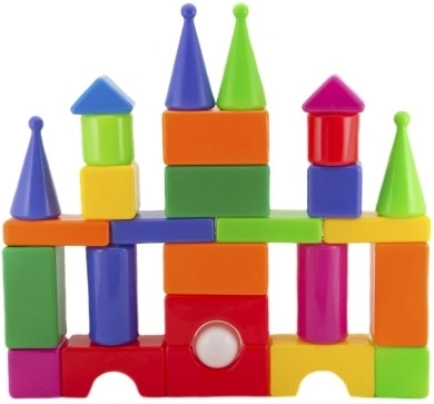 Cu setul de construcție din cuburi mari de plastic, chiar și cea mai dificilă construcție a unui castel poate deveni o joacă. Învățați să recunoașteți culorile și bucurați-vă de ore întregi de creativitate fără griji de siguranță. Cuburile sunt proiectate să fie prietenoase cu copiii și să prevină orice accidentare.