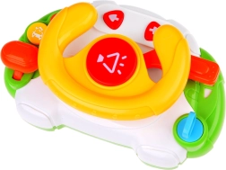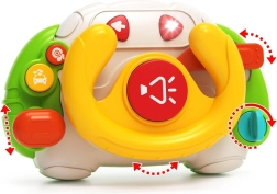 Acest volan colorat pentru copii stimulează imaginația, dezvoltarea senzorială și coordonarea mâinilor. Cei mici pot roti volanul la dreapta și la stânga, pot folosi cheița pentru a „porni” motorul și pot activa semnalizările cu sunete reale. Melodiile vesele și efectele luminoase le mențin atenția micilor șoferi acasă și în deplasare.
