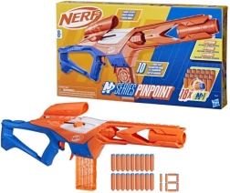 Ridică-ți bătăliile la nivelul următor cu blasterul Nerf N Series Pinpoint. Datorită construcției robuste, prinderii ergonomice și lunetei integrate, fixezi ținta rapid și cu siguranță. Mecanismul cu închizător asigură încărcare lină și precisă, astfel încât te poți concentra pe joc.