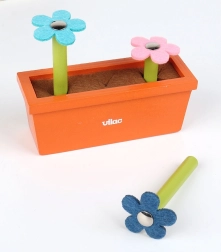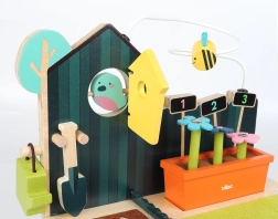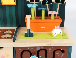 Jucăria este realizată din lemn de calitate, asigurând nu doar siguranță, ci și un aspect estetic care înfrumusețează orice cameră de copil. Este un supliment perfect pentru micii grădinari, fiind în conformitate cu metoda Montessori de predare, astfel susținând dezvoltarea naturală a copilului.