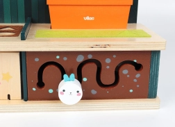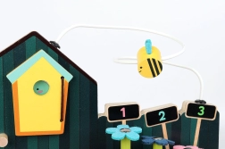 Jucăria dezvoltă motricitatea fină și coordonarea mâinilor prin elemente interactive cum ar fi piesele mobile și sârmele metalice.