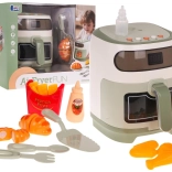 Friteuza cu aer pentru copii este echipată cu diverse efecte sonore și luminoase pentru a simula gătitul real.
