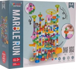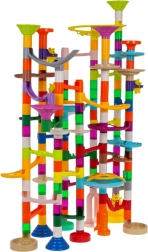 Acest traseu mare și colorat pentru bile este proiectat astfel încât să poată fi folosit de copii de la vârsta de 3 ani, dar cu siguranță va atrage și copiii mai mari. Jocul constă în construcția propriu-zisă a traseului și apoi urmărirea modului în care bilele se mișcă prin tunelurile împletite. Puteți urma instrucțiunile ilustrate incluse sau puteți crea propria construcție.