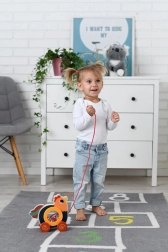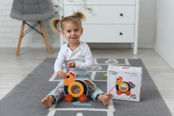 Această jucărie din lemn colorată susține dezvoltarea abilităților motrice și a coordonării mână-picior prin tragere.