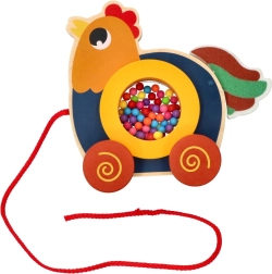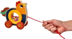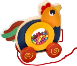 Oferiți copiilor voștri bucuria mișcării cu această jucărie unică din lemn de tras în formă de cocoșel. Aceasta nu doar că fascinează prin designul său colorat, dar îmbunătățește și abilitățile motrice datorită mecanismului simplu de tragere. Cocoșelul este echipat cu mărgele colorate în partea circulară, care generează sunet în timpul mișcării, sprijinind astfel dezvoltarea senzorială a copiilor. Sfoara de tras de 60 cm permite o manipulare ușoară.