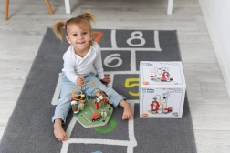 În timpul jocului, copiii descoperă elementele de fermă, cum ar fi tractorul și găinile, ceea ce le dezvoltă cunoștințele despre lume.