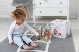 Labirintul este proiectat ergonomic pentru mâinile mici și îmbunătățește joaca independentă și abilitățile creative prin culorile vii și formele diverse ale mărgelelor. Datorită bazei robuste din lemn și firelor de metal, este foarte durabil.