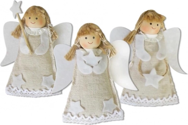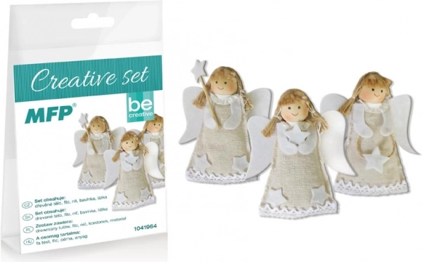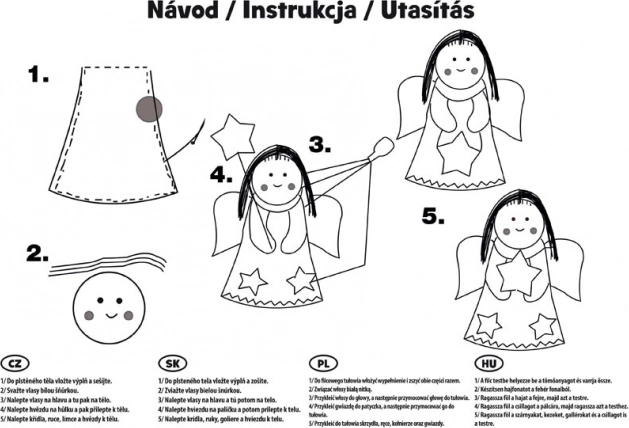 Set creativ - îngeraș - Copiii își antrenează degețelele și își dezvoltă gândirea creativă. Un pachet conține trei îngerași. Fiecare piesă va fi originală și unică. Îi puteți folosi pur și simplu pentru a decora casa sau copiii se pot juca cu ei. CONȚINUTUL PACHETULUI: - 3 x fetru în formă de îngeraș - panglică - umplutură din pâslă - ață - instrucțiuni INSTRUCȚIUNI: 1. Introduceți umplutura în corpul din pâslă și coaseți. 2. Prindeți părul cu șnurul alb. 3. Lipiți părul pe cap, apoi capul pe corp. 4. Lipiți steaua pe baghetă, apoi fixați-o de corp. 5. Lipiți aripile, mâinile, gulerul și stelele pe corp. AVERTISMENT: Utilizați sub supravegherea unui adult, îndepărtați ambalajul din raza copiilor, nu este potrivit pentru copiii sub 7 ani, conține piese mici, pericol de înghițire și sufocare. Livrăm în cutie de hârtie cu agățătoare. Prețul indicat este pentru 1 pachet.