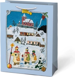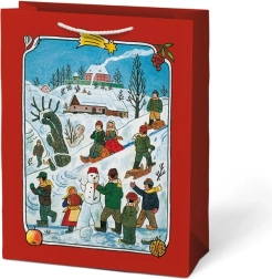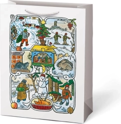 Pungă de cadou de Crăciun din hârtie, mărimea L, cu ilustrații unice de Josef Lada, care adaugă fiecărui dar farmecul tradițiilor. Are mâner din șnur rezistent pentru purtare confortabilă, etichetă pentru dedicație și lac UV local de calitate pentru luciu frumos și durabilitate. Disponibilă în patru motive de iarnă și culori – alb, roșu, albastru deschis, albastru închis – livrăm în funcție de stoc.