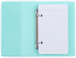 Caiet de notițe compact în format A6, cu copertă rezistentă din PVC, într-o nuanță elegantă de verde. Dispune de o mecanică cu 2 inele și 100 de foi dictando pentru scriere confortabilă acasă, la școală sau la birou.