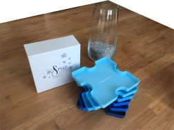 Fiecare recipient are dimensiunea de aproximativ 19,5 x 19,5 cm și în cele șase recipiente pot fi depozitate aproximativ 1.000 de piese, fiind ideal pentru diferite dimensiuni de puzzle-uri.