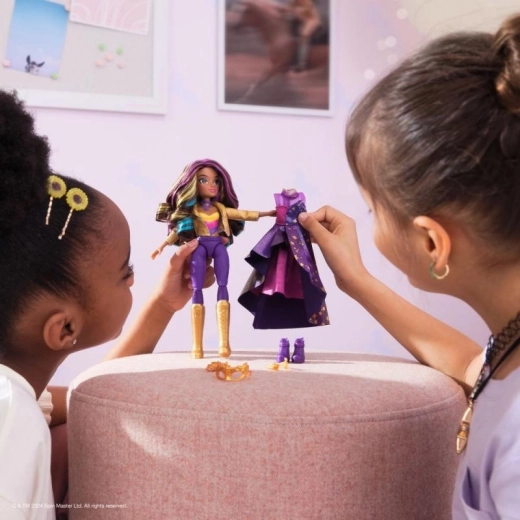 Sophia vine în îmbrăcăminte de echitație cu piese interschimbabile. Schimbă-i ținuta cu o rochie strălucitoare de bal și accesorii.