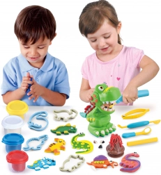 - 4 modeline colorate, figurină dinozaur, 6 forme, 2 unelte dentare, pensetă, cuțit, băț