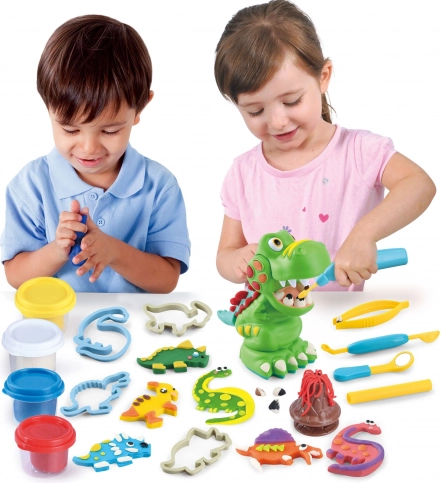 Cufundă-te în distracție cu Modelină Dentist Set Dino, care include diverse modeline și accesorii pentru o experiență perfectă. Creează-ți proprii dinozauri cu gura deschisă și personalizează aspectul lor după gustul tău.