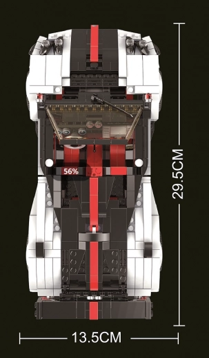 Acest set de construcție detaliat îi va încânta pe toți iubitorii de automobile și tehnică. Proporțiile reale la scară 1:16, combinația contrastantă alb‑negru cu accente roșii și elementele funcționale îl transformă într-un model grozav pentru joacă și expunere. Datorită instrucțiunilor ilustrate clare, asamblarea este distractivă și dezvoltă motricitatea fină, imaginația spațială și răbdarea.
