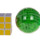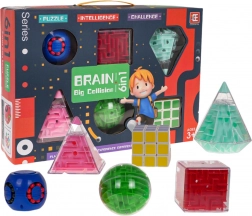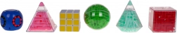 Cub cu labirint 3D, două piramide cu bilă, labirint sferic, minge cu biluțe și cubul RUBIK – provocări variate pentru ore întregi de distracție inteligentă.