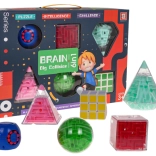 Acest set universal combină diverse tipuri de provocări logice și motrice: labirinturi transparente cu bilă în cub și piramide, puzzle‑uri sferice și cu biluțe și clasicul cub RUBIK. Fiecare element îi motivează pe copii la răbdare și sprijină coordonarea mână‑ochi.