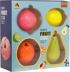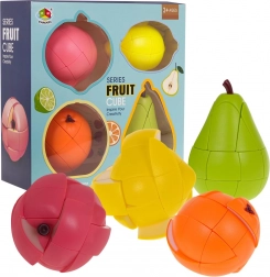 Acest set variat include patru puzzle-uri 3D în formă de fructe îndrăgite: măr, lămâie, portocală și pară. Fiecare model este format din piese interconectate, care pot fi rotite și rearanjate. Scopul este ca, după amestecare, să readuceți piesele la forma inițială a fructului – o provocare distractivă pentru copii și adulți.