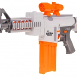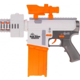 Trage rapid, una după alta, fără încărcări îndelungate. Blasterul atinge aproximativ 15 m, ideal pentru confruntări în aer liber și în interior.