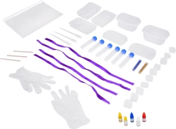 Dacă copilul dumneavoastră învață cel mai bine prin joacă sau căutați un mod interesant de a petrece timpul, fabricarea săpunurilor va fi alegerea ideală! Creați săpunuri frumos parfumate și învățați chimie în același timp! Procesul de creare este simplu și sigur – copiii învață regulile de bază ale funcționării săpunului și tehnici diverse de producție artizanală. Folosind baza pentru săpun, topirea, amestecarea cu culoarea aleasă și turnarea ulterioară în forme, rezultă săpunuri frumoase și colorate cu forme unice. Setul include de asemenea arome, astfel încât fiecare săpun să poată avea o mireasmă diferită.
