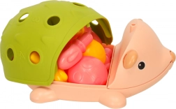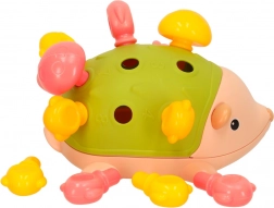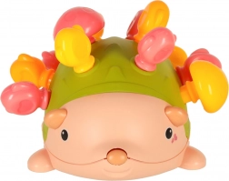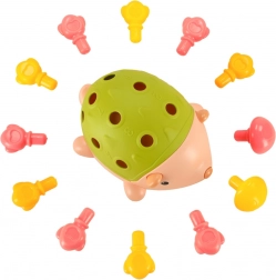 Acest arici colorat, cu țăruși detașabili, dezvoltă excelent abilitățile copiilor de la 18 luni. Cei mici pot scoate și introduce cu ușurință țărușii în orificiile numerotate, exersând priza, precizia și concentrarea. Culorile blânde, plăcute și aspectul prietenos atrag în mod natural atenția.