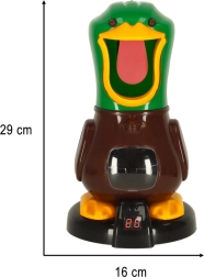 Nimerește cu bilele din spumă în ciocul deschis și urmărește cum ecranul LCD adună automat loviturile precise. Două pistoale în pachet invită la turneu în familie – cine strânge mai multe puncte câștigă! Datorită manevrării simple, pistoalele pot fi folosite și de cei mai mici, care își antrenează natural coordonarea mână–ochi și motricitatea fină.