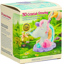 Acest set distractiv îmbină experimentul chimic cu tema de basm a unicornului. Copiii își pregătesc singuri soluția, lasă cristalele să crească pe modelul din ghips, iar la final își personalizează unicornul cu vopsele. Procedura este simplă, iar rezultatele sunt cu adevărat spectaculoase.