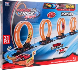 Vă prezentăm pista de curse care oferă ore de distracție și adrenalină pentru copiii de la trei ani. Acest set ușor de asamblat include 31 de piese care formează o pistă fascinantă cu patru mari bucle de 360°. Fabricat din plastic de înaltă calitate și proiectat în culori vesele pentru a captiva fiecare copil.