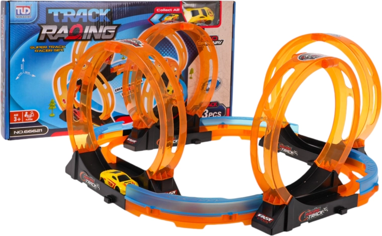 Pistă de curse pentru copii cu bucle este realizată din plastic de calitate, cu culori vibrante, ideală pentru micii piloți. Constă în 23 de piese și este concepută să ofere ore de distracție și joc creativ. Eliminați plictiseala și bucurați-vă de acțiune cu buclele care permit rotiri de 360 de grade ale mașinii. Acționată prin mecanismul pull-back, mașinuța merge înainte cu viteză după ce este trasă înapoi.