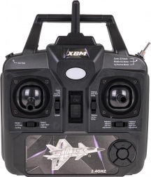 Modelul include telecomandă neagră ușor de utilizat, cu frecvență de 2.4GHz, care permite controlul avionului la distanță cu mare precizie.