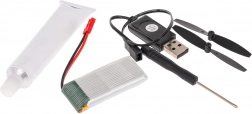 Pachetul include tot ce este necesar pentru asamblare, inclusiv elice de rezervă, încărcător USB și baterii, asigurându-se că avionul este gata de zbor în cel mai scurt timp.