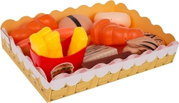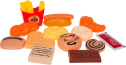Croissant, biscuiți, ciocolată, vaflă, hot dog, cartofi prăjiți și ketchup – copiii pot servi bunătățile preferate și exersa împărțirea.
