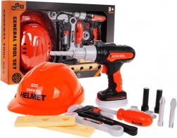 Acest set realist de scule pentru copii oferă tot ce are nevoie micul constructor: cască de protecție, bormașină/șurubelniță electrică pe baterii, șurubelniță, chei, șuruburi, piulițe și plăcuțe din lemn pentru exersare. Datorită materialelor plastice de calitate, setul este durabil și sigur pentru joaca de zi cu zi.
