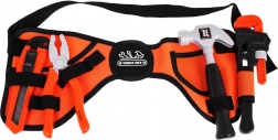 Centură textilă cu bucle și buzunare care găzduiește întregul set – copiii au mereu la îndemână ciocanul, cleștele sau șurubelnița. Circumferință maximă aproximativ 84 cm.