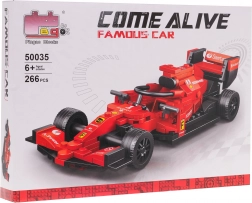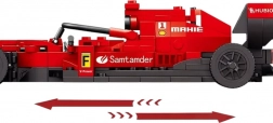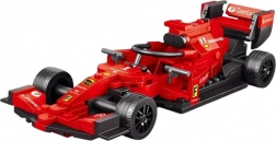 Set complet de piese din plastic de calitate care permite construirea unui vehicul roșu detaliat, inspirat din F1 – ideal atât pentru joacă, cât și pentru expunere.