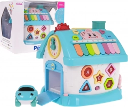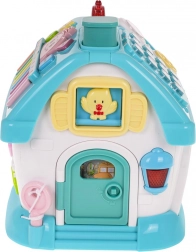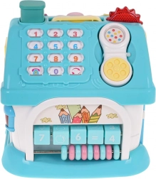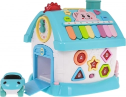 Căsuța interactivă este fabricată din plastic de calitate, în culori atractive, și este concepută pentru ca cei mici să dezvolte într-un mod distractiv recunoașterea formelor, literelor și numerelor. Fiecare dintre cele patru fețe oferă activități diferite – de la ceas cu limbi cu adevărat mobile și uși de garaj, la peretele cu alfabet și forme iluminate, până la ușă de intrare cu cheiță cu lumină și sunete. Include și o mică mașinuță pentru și mai multe scenarii de joacă.