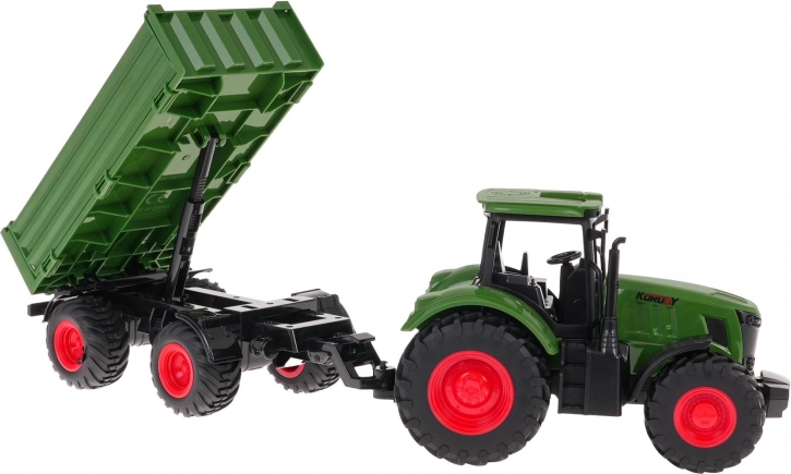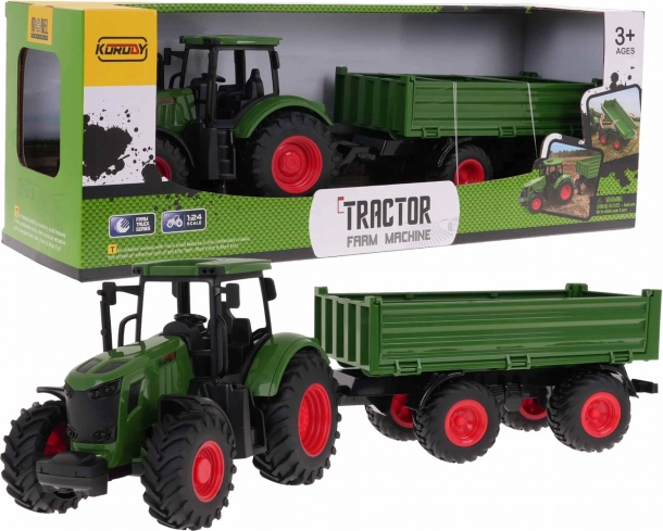 Tractor cu remorcă realizat la scară 1:24, pentru copii de la 3 ani. Tractorul a fost reprodus foarte realist după o mașină agricolă reală, cu detalii minuțioase. Este fabricat din plastic de cea mai înaltă calitate, în culori vii. Are anvelope mari din cauciuc pentru o bună aderență. Remorca tractorului poate fi decuplată, la fel cum pot fi coborâte lateralele și ridicată placa din spate. .. Funcțiile tractorului: . - potrivit pentru copii peste 3 ani, .- fabricat din materiale de cea mai înaltă calitate, .- realizat la scară 1:24, .- elemente mobile: remorcă (sus, jos), - laterale coborâte și placa spate ridicată, .- anvelope din cauciuc, .- reproducere realistă, .- volant mobil. . |