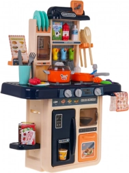 Această bucătărie din plastic de calitate, în culori vii, oferă copiilor distracție autentică în timp ce gătesc. Arzătoarele iluminate cu sunete reale de prăjire și clocotire, abur realist și apă curgătoare de la robinetul funcțional stimulează simțurile și imaginația. Frigiderul, cuptorul și cuptorul cu microunde cu uși care se deschid oferă suficient spațiu pentru joacă și depozitare.