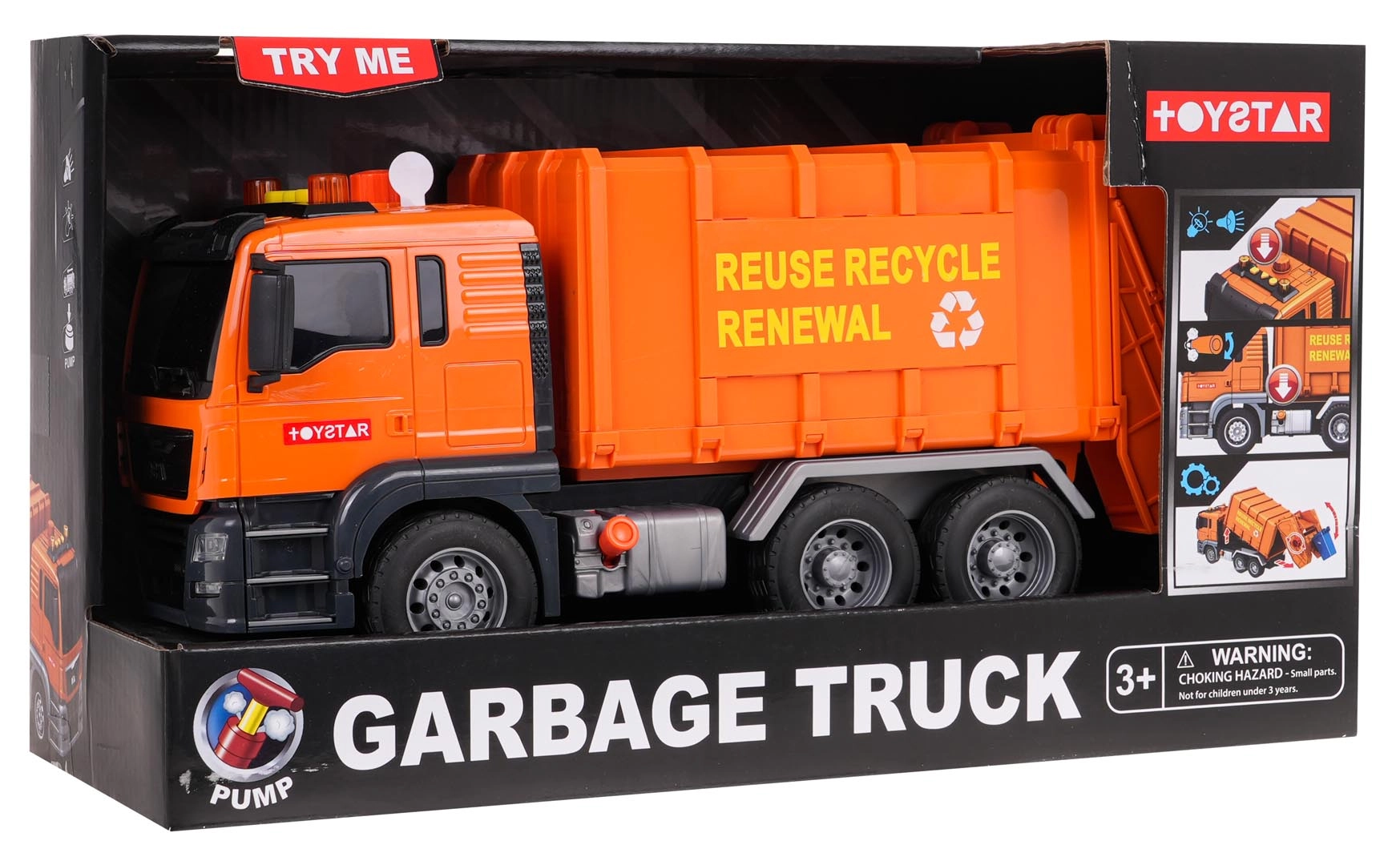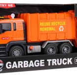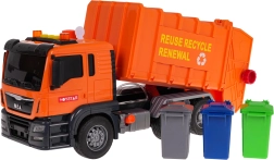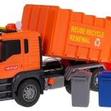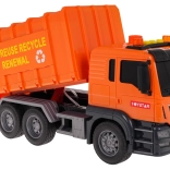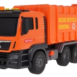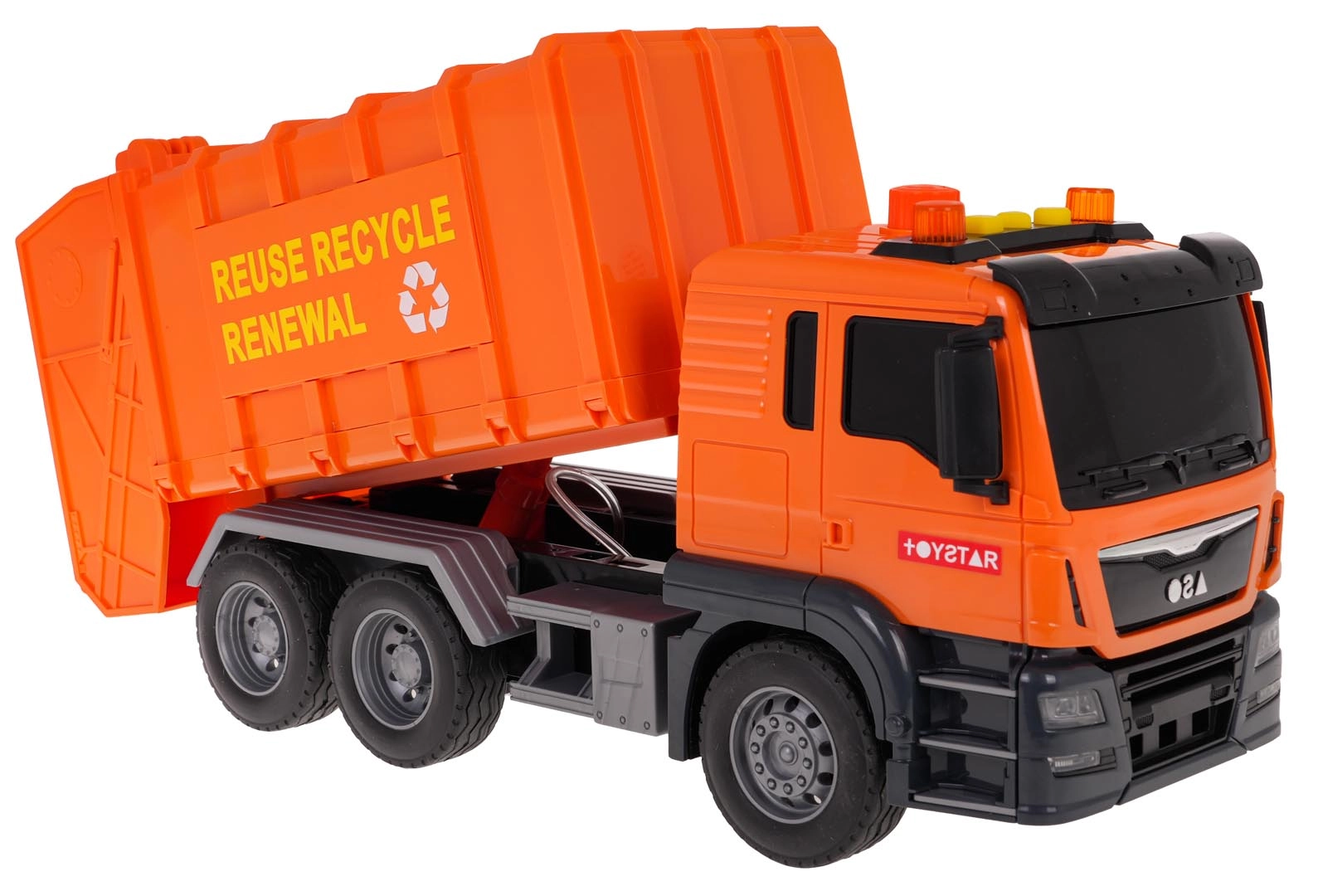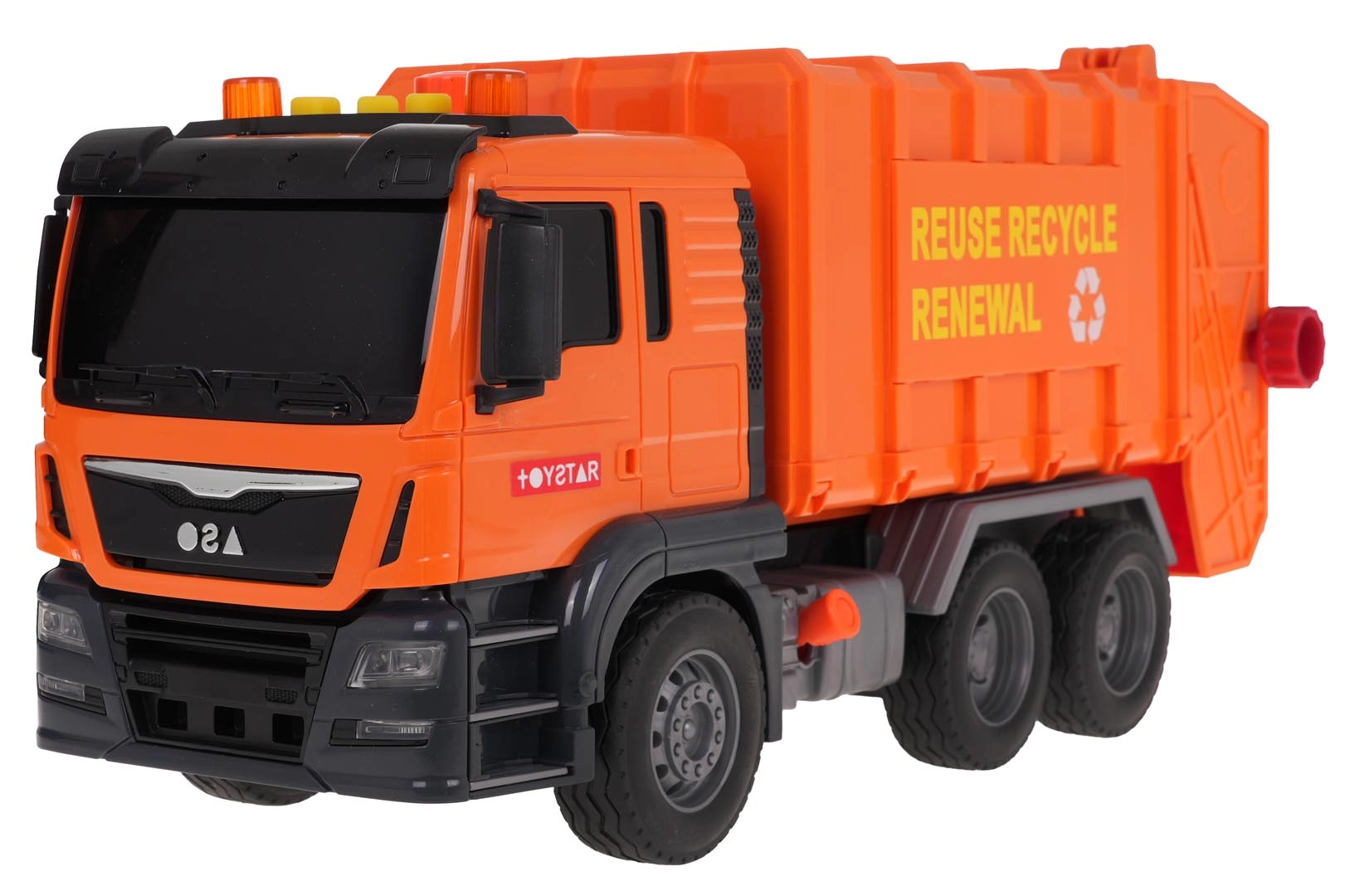 | Traducere din limba engleză.. | Mașină de gunoi portocalie cu funcție sonoră + accesorii . |